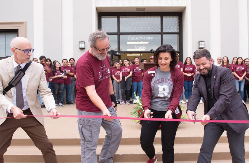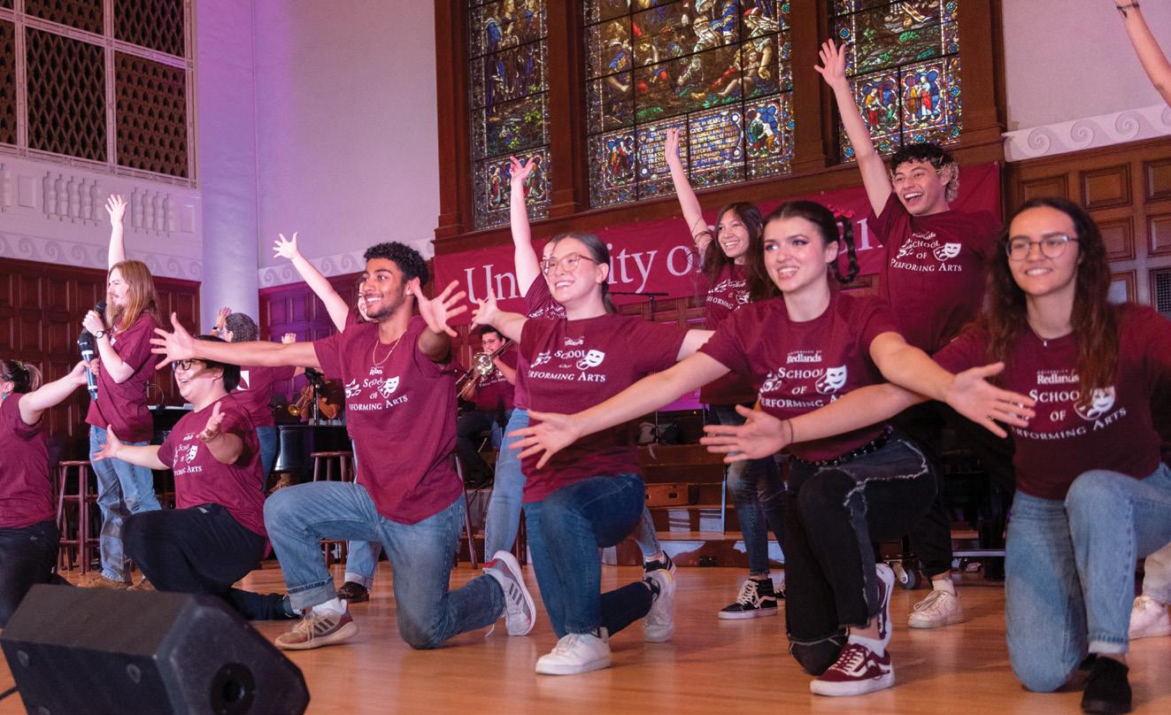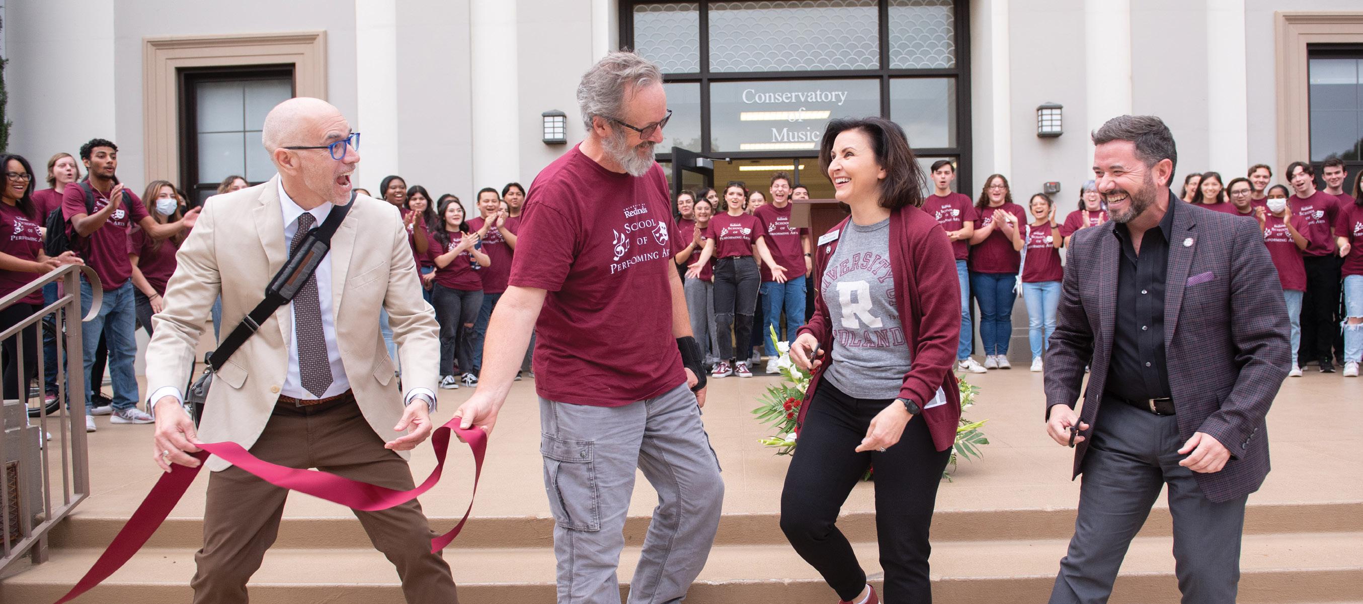 Aspecial celebration at the University’s Homecoming and Family Weekend launched the University of Redlands new School of Performing Arts (SOPA), bringing music, theatre, and dance together into one school. The event included performances by students in music, theatre, and dance, followed by the unveiling of the sign on Watchorn Hall and the cutting of the ribbon.