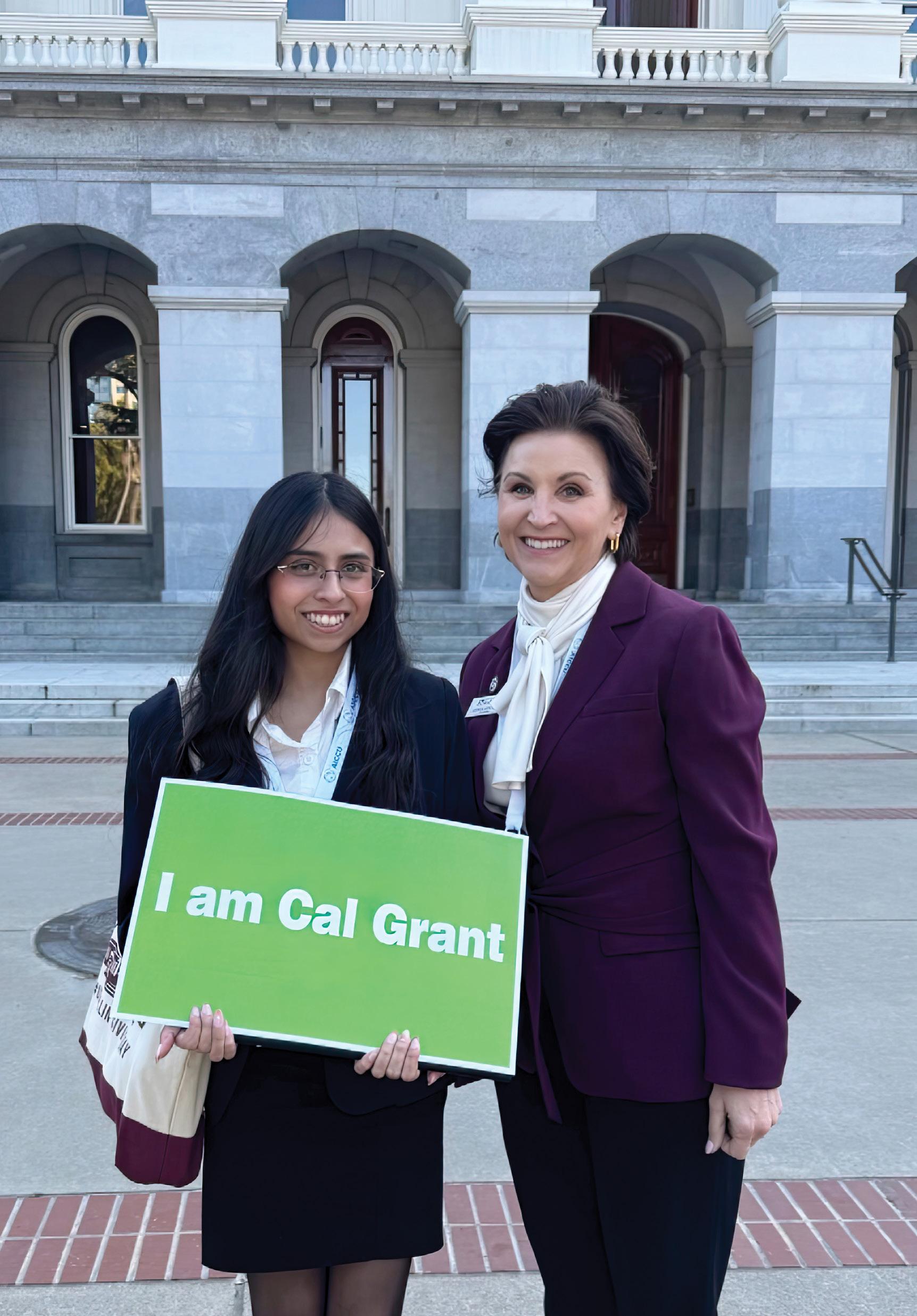 This year, the University of Redlands deepened its impact beyond campus borders through bold advocacy. President Krista Newkirk represented the University at the Association of Independent California Colleges and Universities (AICCU) Day in the Capitol, where she was joined by Gaby Herrera ’25 to advocate for AB 402, a bill aimed at expanding Cal Grant funding and improving transfer pathways for nontraditional students.