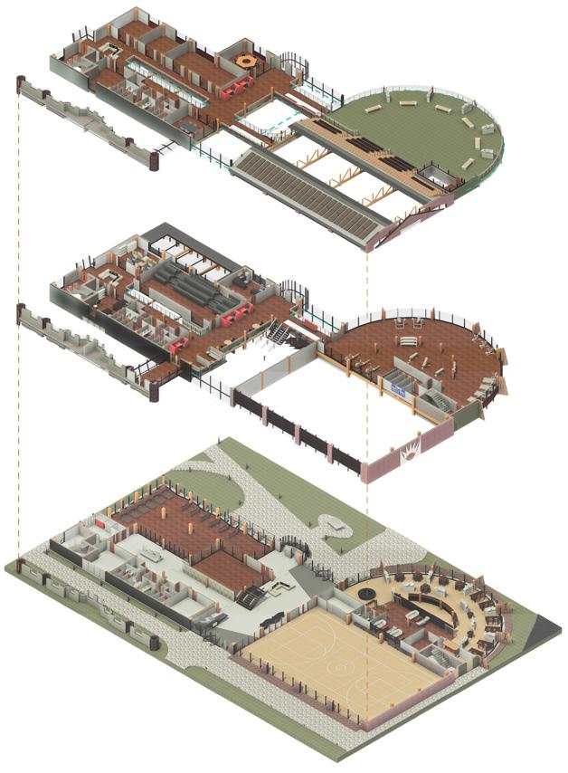 Transforming an old car park into a vibrant hub of health and sustainability, the project integrates a vertical hydroponic garden that can produce leafy greens in an efficient and controlled way. By challenging conventional health models, we promote preventive care and self-treatment through access to fresh produce, educational programs and fitness equipment. The landscape around the building is what connects the project to the rest of Blackburn. Encorporating sculpted landcaping, community art instillations and commuting routes to become a junction to the rest of the town.
