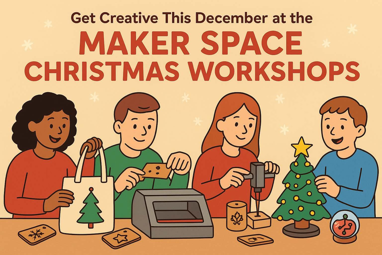 Get festive and creative this December at the Maker Space Christmas Workshops! Suitable for all skill levels, the sessions include laser-cut Christmas tags, engraved reusable stamps, beginner electronics for building light-up trees and baubles, and a new vinylprinting workshop to design your own festive tote bag.