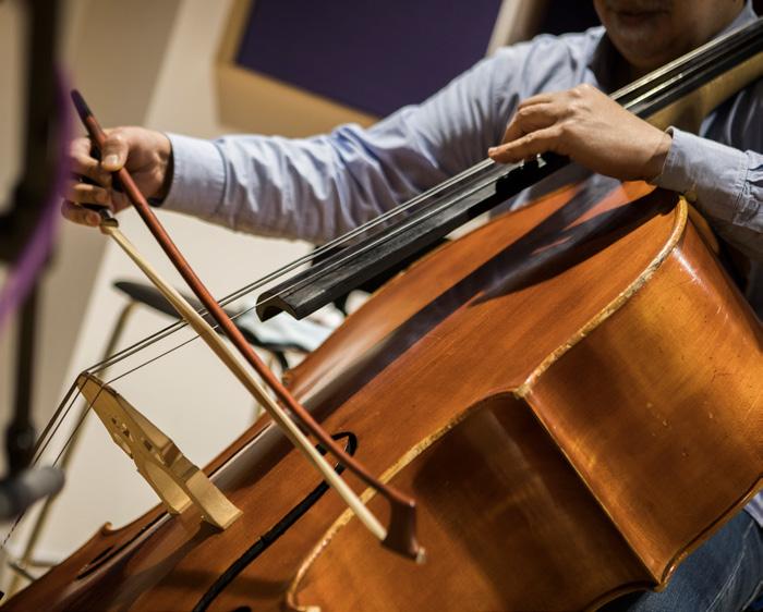 Our large band room in our New Adelphi building has enough space for a concert piano, a full orchestra or a full ensemble. It includes full recording facilities for live performances, a listening room, a surround-sound studio and a sound and music design suite. All studios feature grand or upright pianos, guitars and basses and professional drum kits, as well as synthesizers and drum machines.