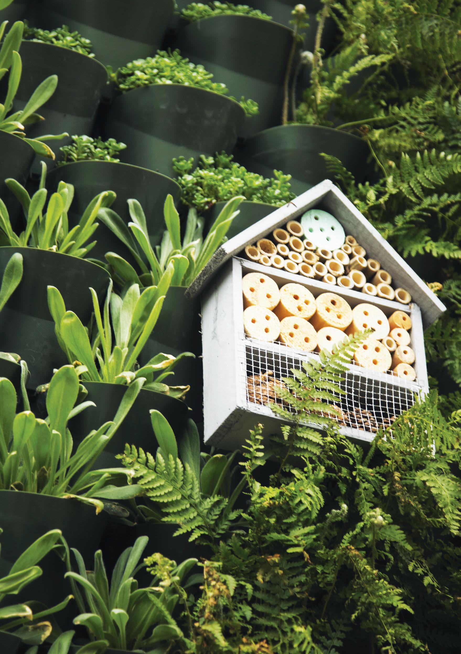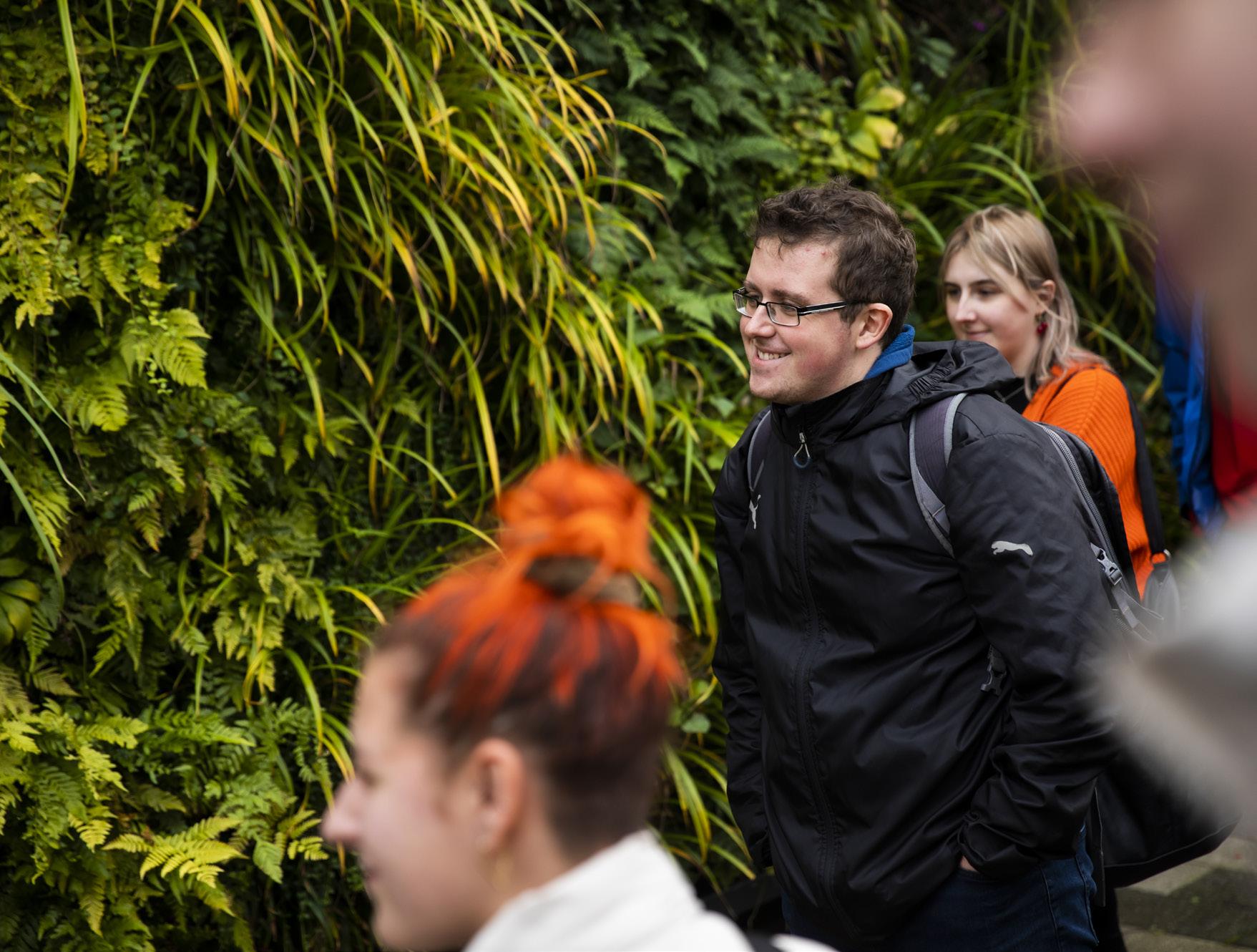 Our living lab, located on our Peel Park campus, is home to the living green wall. Consisting of four different planted sections that include biodiversity, seasonal, pollinator, edible – this mass of plant life and soil helps utilise excess rainwater from across the University and attract more biodiversity to the campus.