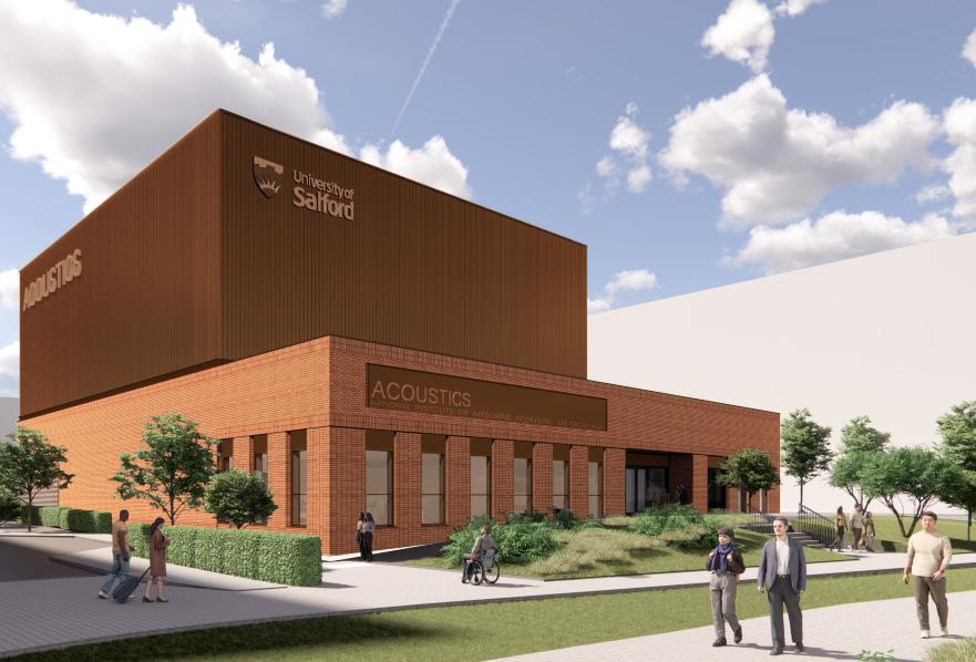 When complete, the new Acoustics Building will provide the University with state-of-the-art testing facilities and will house the teaching, research and commercial activities of our Acoustics Department. The new building will help us deliver world-class research to support companies, charities and the public sector to create a better sounding future, as well as ensure our students and researchers are learning in world-class facilities.