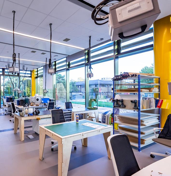 The Maker Space is a campus facility for digital fabrication and additive manufacturing. Students and staff have full access to our equipment, including 3D printers, laser cutters, vinyl cutters and clean working spaces for testing, metrology and assembling projects. There is also a dedicated computer suite for 2D and 3D design (CAD) and electronics work benches.