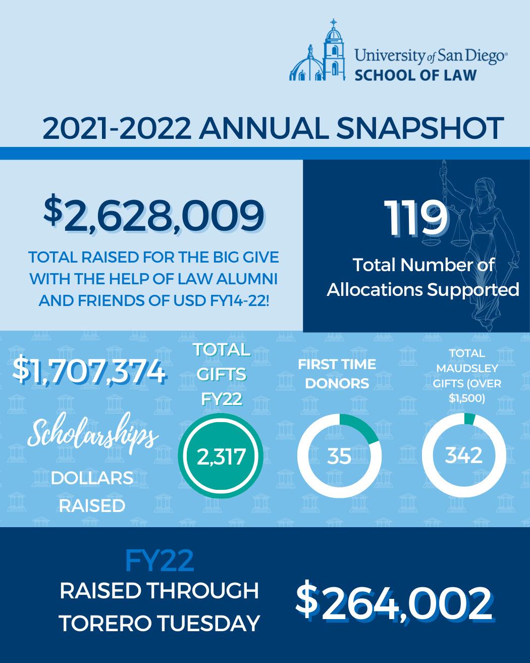 The University of San Diego (USD) School of Law’s Big Give—36-Hour Giving Campaign roared to success with the help of alumni, faculty, staff, students, and friends
