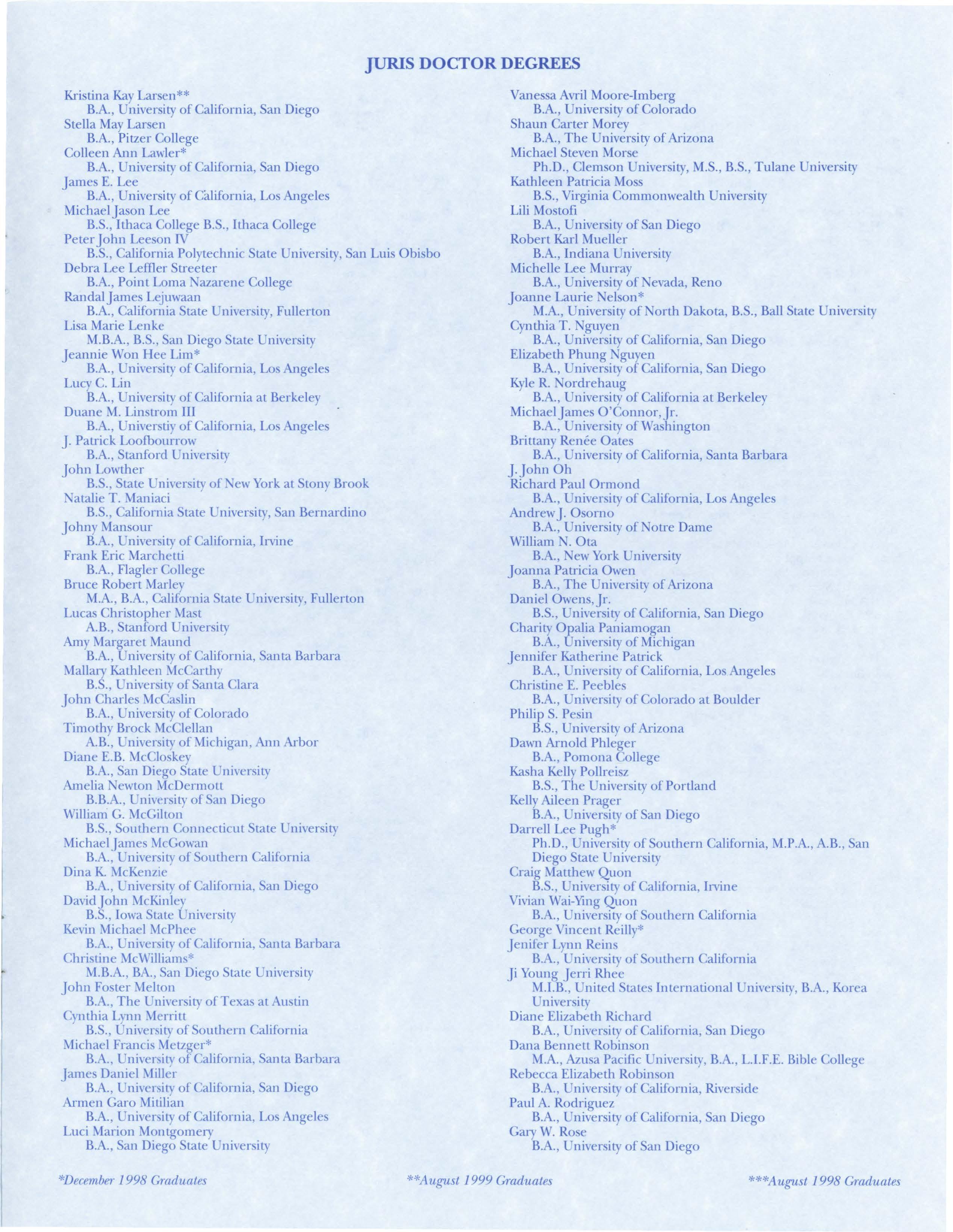 J.D., California Western School of Law, B.A., University of Southern California