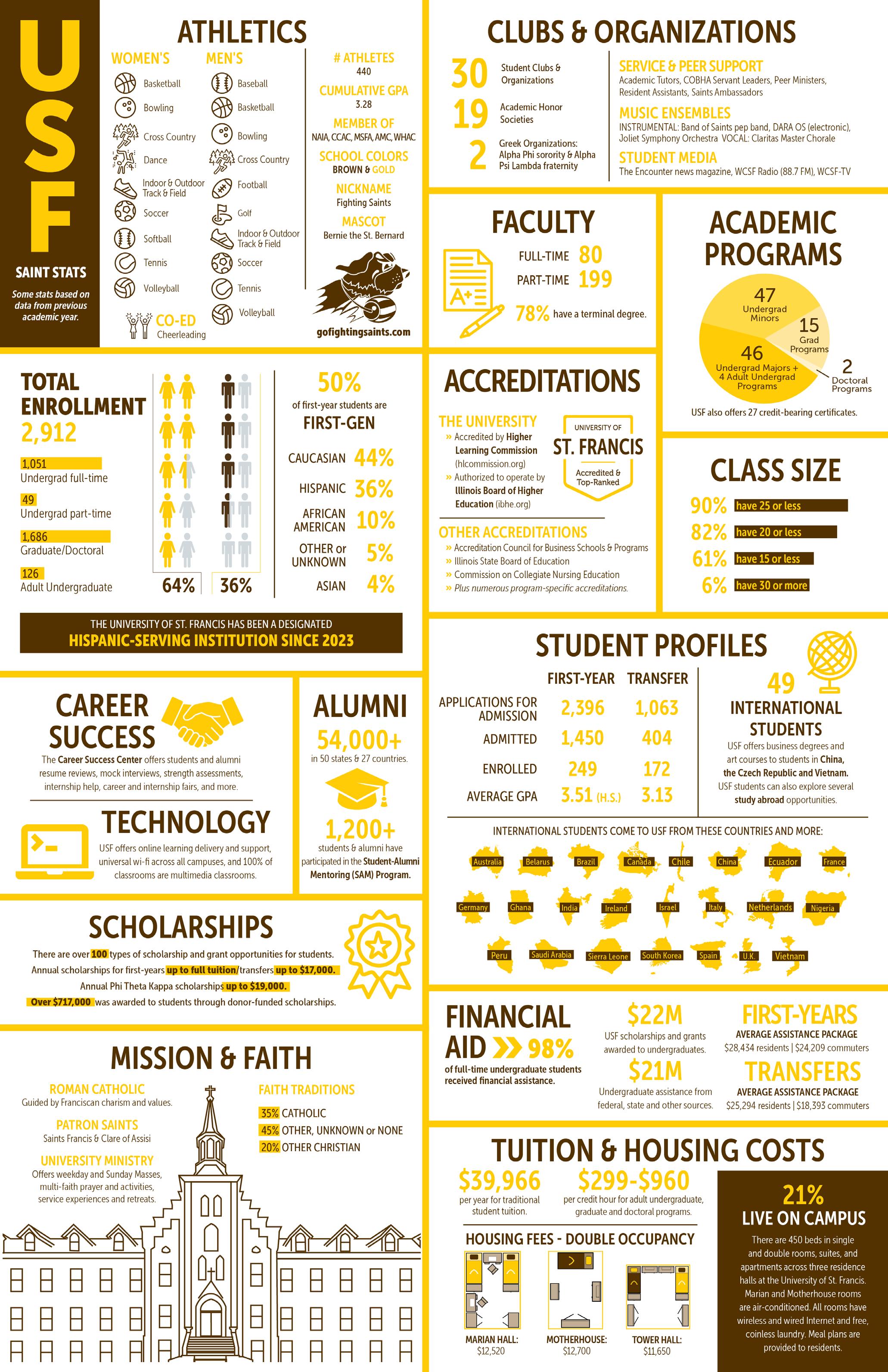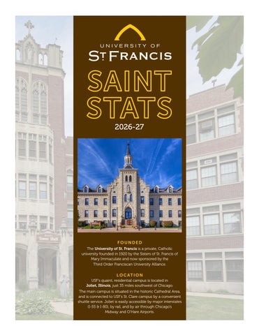 The University of St. Francis is a private, Catholic university founded in 1920 by the Sisters of St. Francis of Mary Immaculate and now sponsored by the Third Order Franciscan University Alliance.