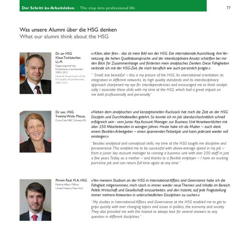 Was unsere Alumni über die HSG denken What our alumni think about the HSG Dr. iur. HSG Klaus Tschütscher, LL.M. Regierungschef des Fürstentums Liechtenstein 2009–2013 Head of Government of the Principality of Liechtenstein, 2009–2013