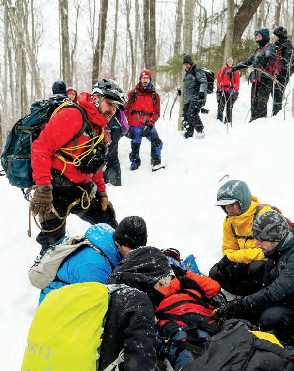 the cover: In deep snow, fourth-year medical students participate in backwoods rescue scenarios with the Stowe Mountain Rescue Squad in the Mt. Mansfield State Forest. See