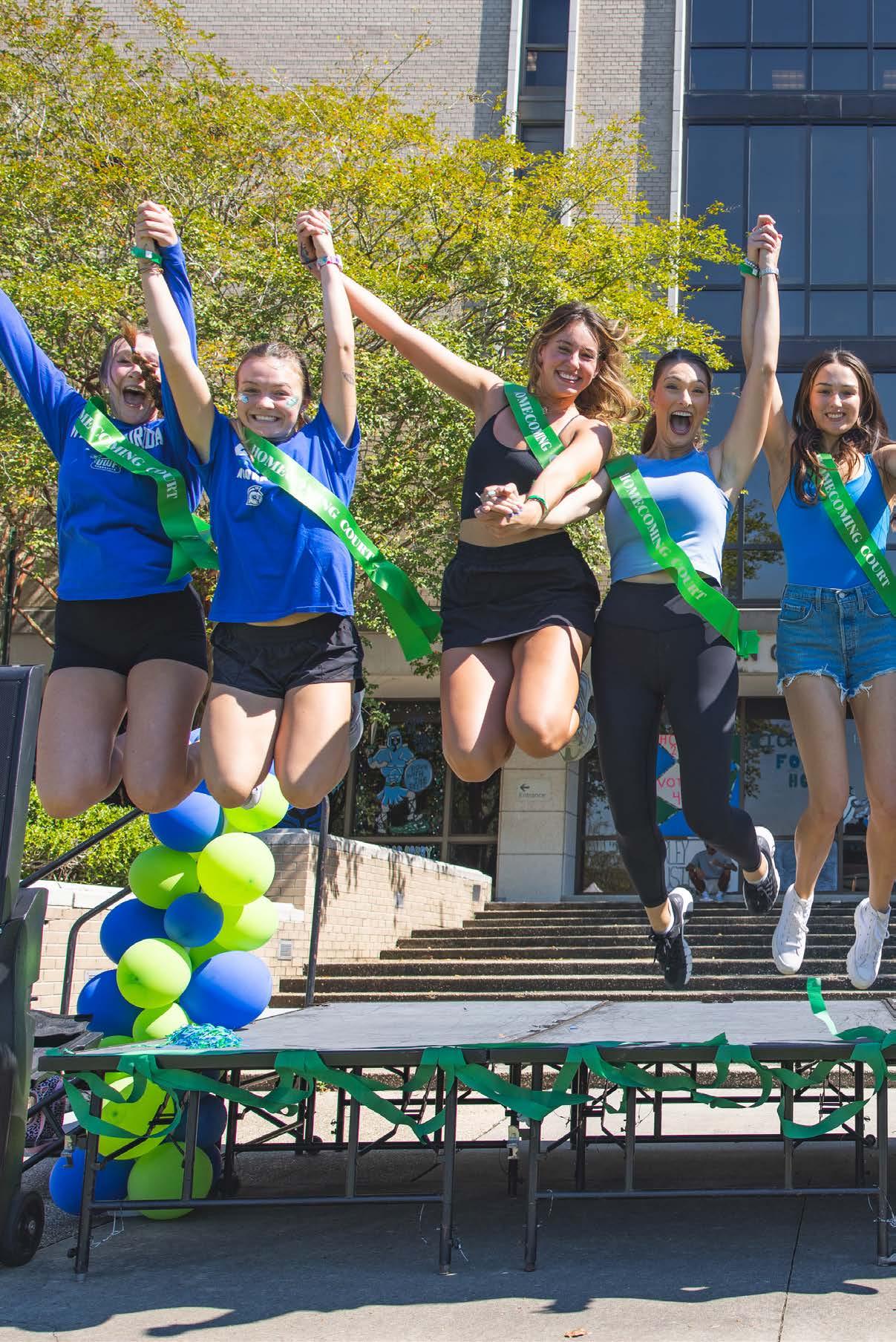 Clockwise from top: Homecoming Court is presented at Cannon Fest in October 2024; Argos take to PenAir Field; UWF SGA members attend a football tailgate.