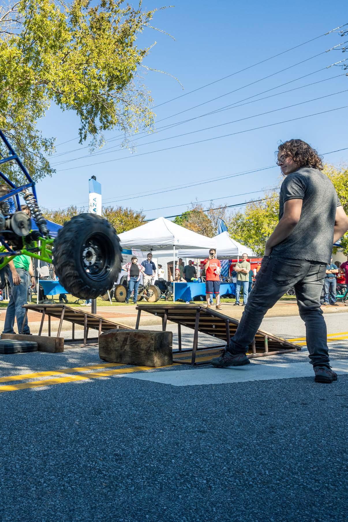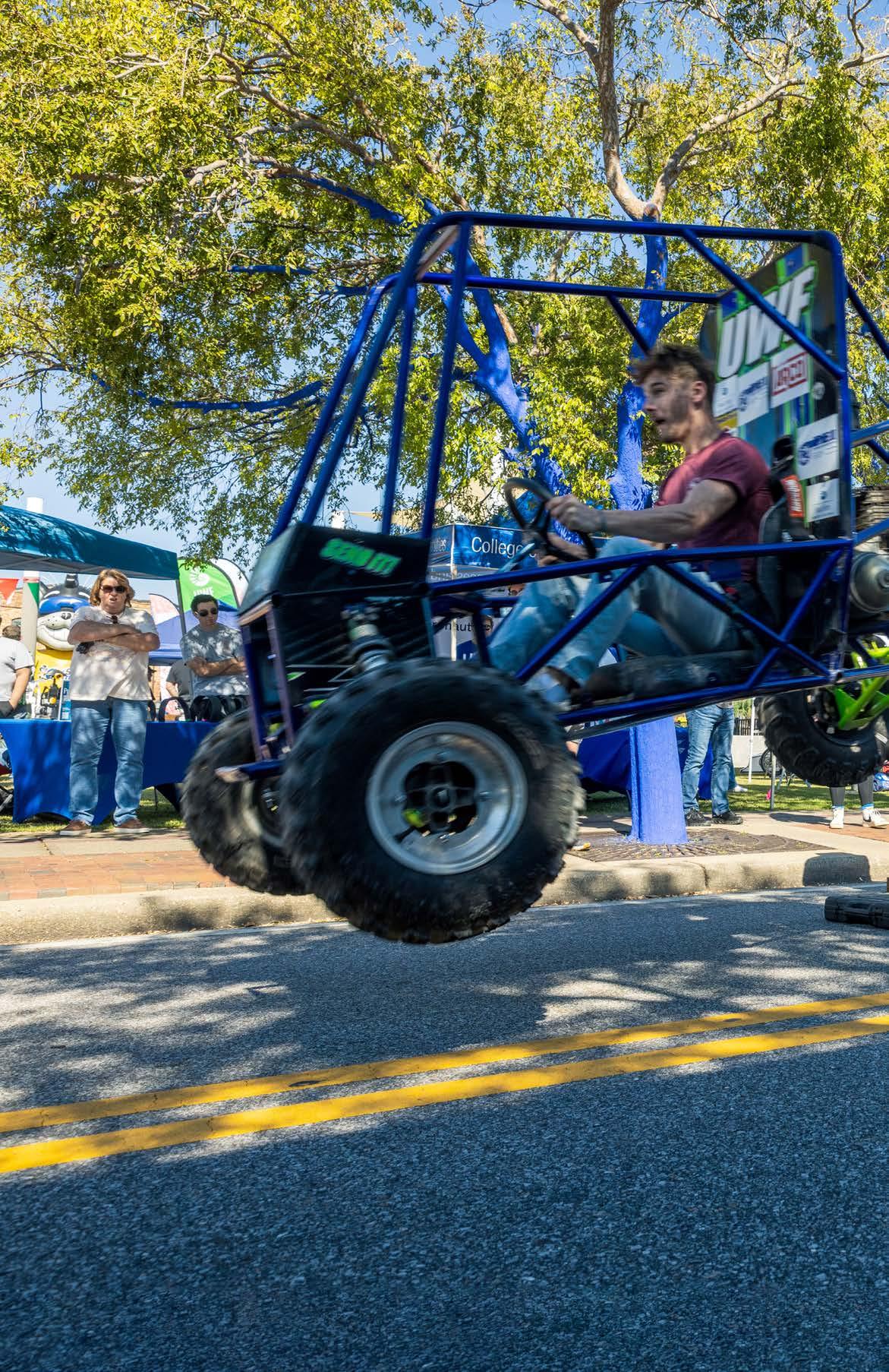 Background: The UWF Society of Automotive Engineers (SAE) Baja team demonstrates its off-road vehicle at the Pensacola Maker Faire. The team of mechanical engineering students competes against other institutions at engineering events. Top Right: The All Majors Career and Internship Fair.