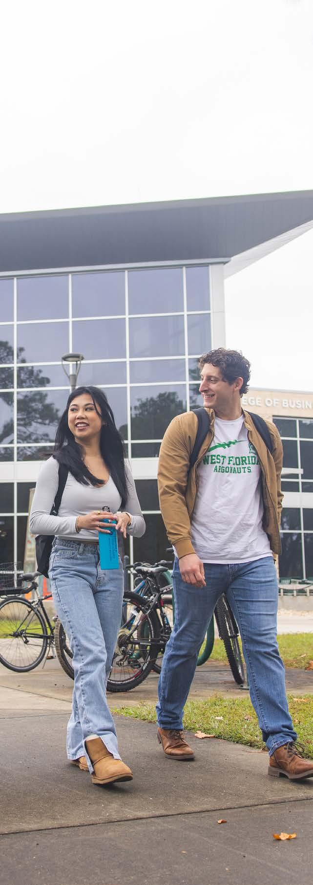 UWF offers classes through various delivery methods, including face-to-face, hybrid, and online. Though we make every effort to provide on-campus classes in face-to-face programs, there is a possibility that some classes will have limited availability and may be offered online only. Specialized admissions program. Accelerated bachelor’s to master’s option available. Available at UWF Emerald Coast. Students pursuing certain programs full-time will have to take classes periodically in Pensacola. Also online: Required upper-division courses also available online. Students may need to complete some lower-division courses at another institution whose accrediting agency is included on the list of approved accrediting agencies provided in the UWF Catalog. Online only: Required upperdivision courses online. Students may need to complete some lower-division courses at another institution whose accrediting agency is included on the list of approved accrediting agencies.