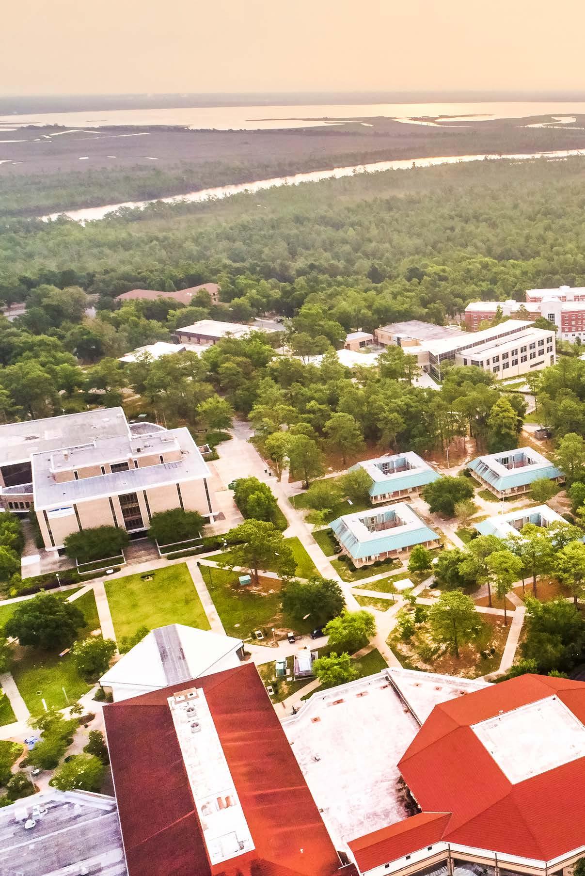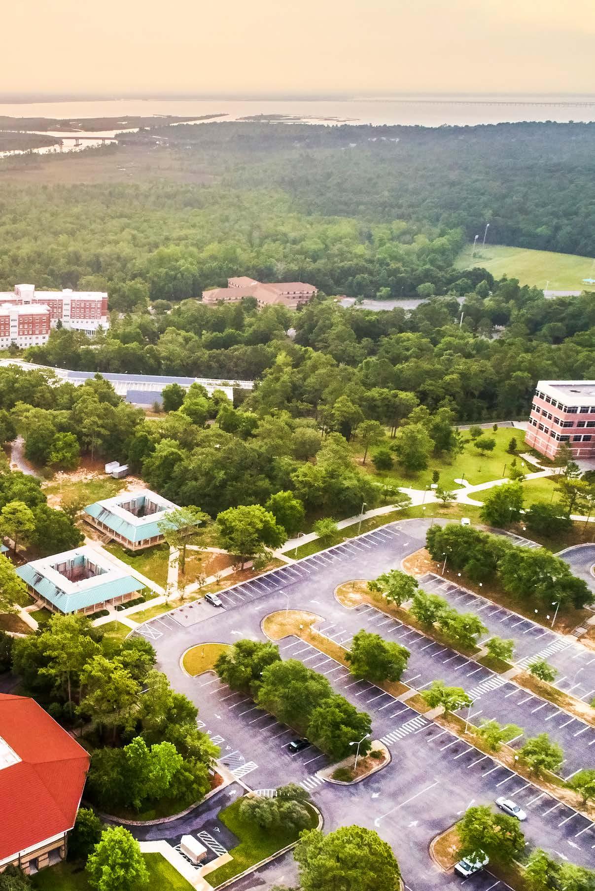 Photo: An aerial view of campus overlooks the Conecuh and Escambia Rivers.