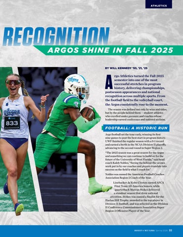 “The 2025 season was a great season for the Argos and something we can continue to build on for the future of the University of West Florida,” said head coach Kaleb Nobles. “Seeing the behind-the-scenes work put in by our coaches and players translate into success on the field is what I coach for.”