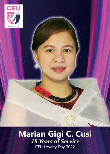 in Science Education. Thank you for your full support of my active participation in national and international conferences representing CEU and my dynamic involvement in different professional organizations where I became an officer in different capacities. Thank you for all the work benefits shared to all CEU employees including me, especially in allowing me to send my nieces and nephew to finish college in CEU.