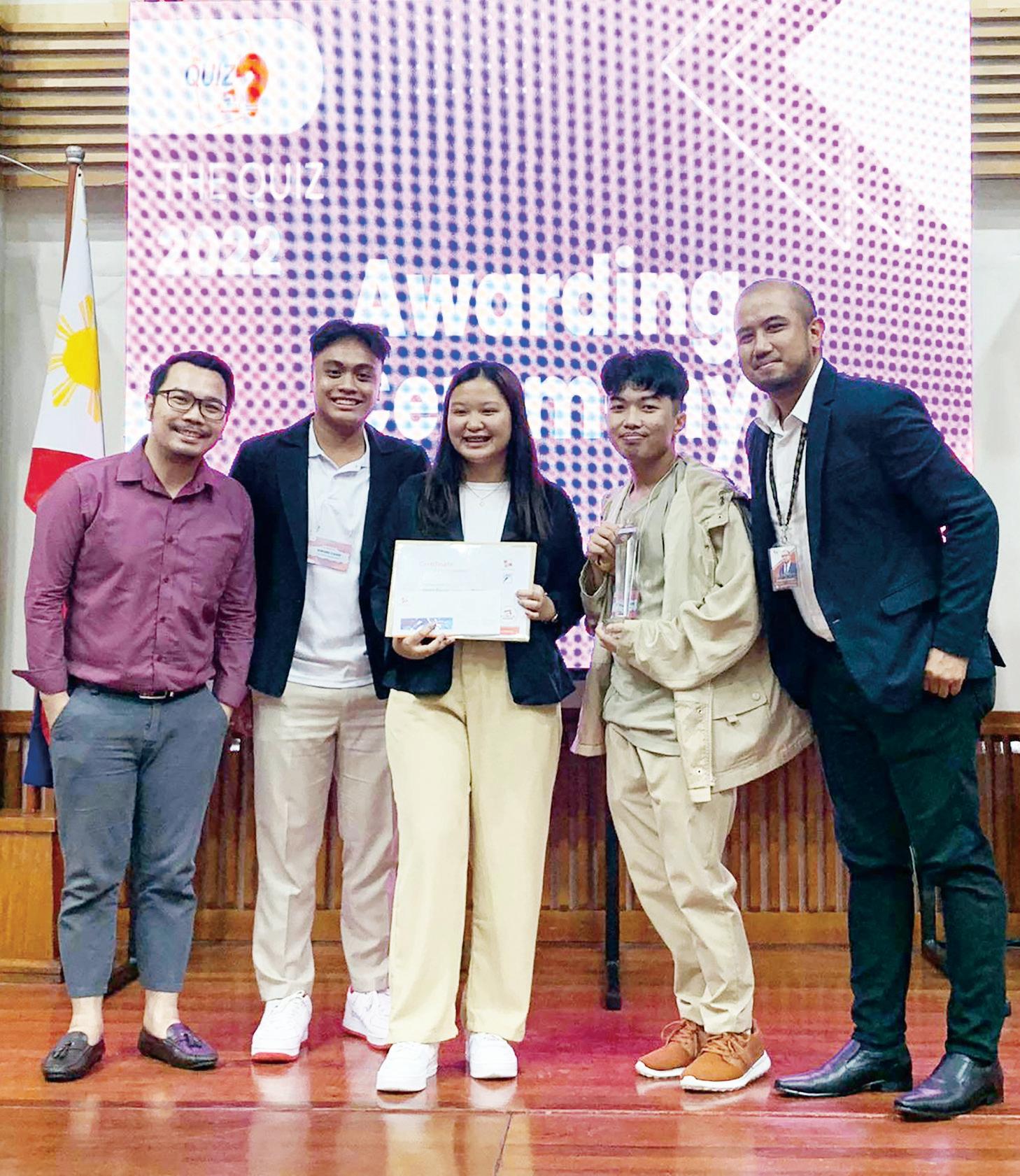 The trio was composed of Josh Nicole Miranda, Roybren Bautista, and Gerard Caspe, all Sophomore students, who took the challenge of joining the said quiz bee despite the limited time of preparation.