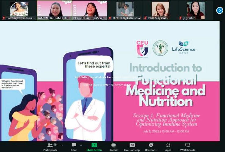 Centro Escolar University School of Nutrition and Hospitality Management in collaboration with the CEU Professional and Continuing Education (PACE), conducted a 3-Part Webinar Series on Functional Medicine and Functional Nutrition on July 8, 15, and 29 from 10:00am to 12:00nn via Zoom.