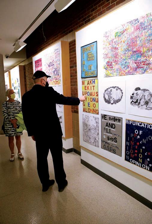 On the Cover Artclectic 2021 included a Tibbott hallway gallery of students’ tributes to outgoing Director Vince Durnan. This quilted painting is by Art Teacher Andy King’s class: Jack Aaron ’26, Tom Buntin ’26, Theo Burgess ’27, Mack CohenPoole ’26, Shaw Fleming ’26, Celeste Green ’27, Lilly Lapidus ’27, Abigail Manoukian ’27, Porter Ratliff ’26, Josephine Scott-Barnes ’26, and Fair Wellons ’27. Students used watercolor and were moved to capture the essence of Durnan in his signature brown. The patchwork approach signifies his indi vidual relationships with students combining to form the bigger picture of his impact, King said. The art lesson focused on visual measuring, pairing technical skills with a larger idea to help students develop a personal connection to their assignment and raise their engagement in painting class.