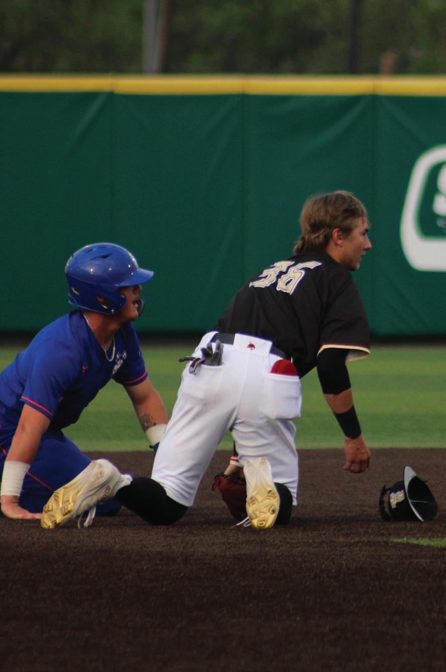 Texas State freshman infielder Case Mora (right) looks out for the ball, Wednesday, March, 22, 2023, at Bobcat Ballpark.