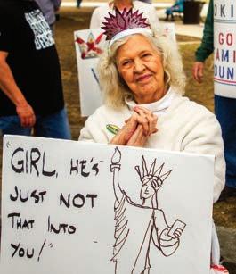 A San Marcos local participates in the No Kings Protest, Saturday, March 28, 2026, at the Hays County Courthouse. The protest was held by Step-Up San Marcos and other local advocacy groups.