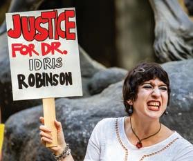 Students, faculty and union members gathered at The Stallions to protest the firing of Associate Philosophy Professor Idris Robinson on Monday, March 30.