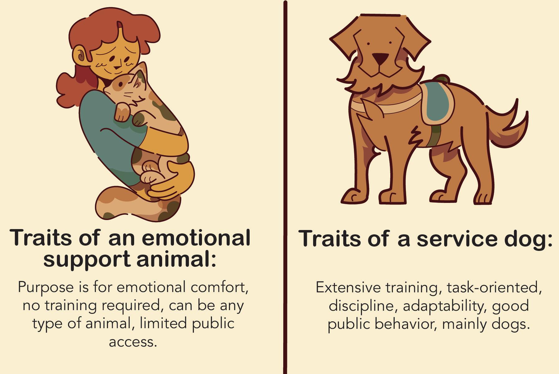 “The keywords here are ‘dog’ and ‘trained,’” Steiger said. “The emotional support animal does not necessarily have to be a dog, and it does not have to be trained.”