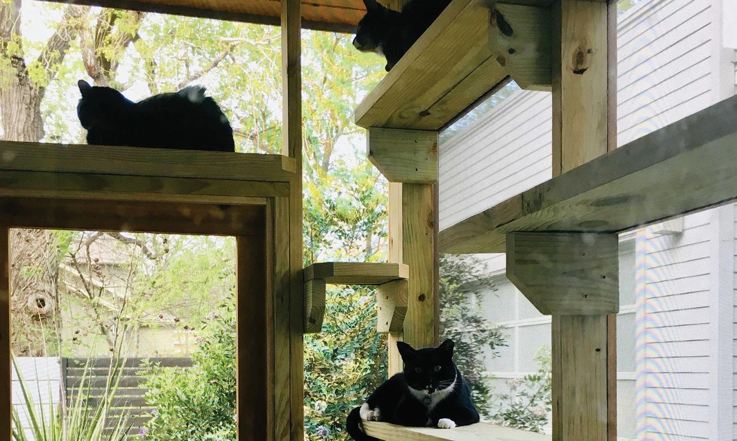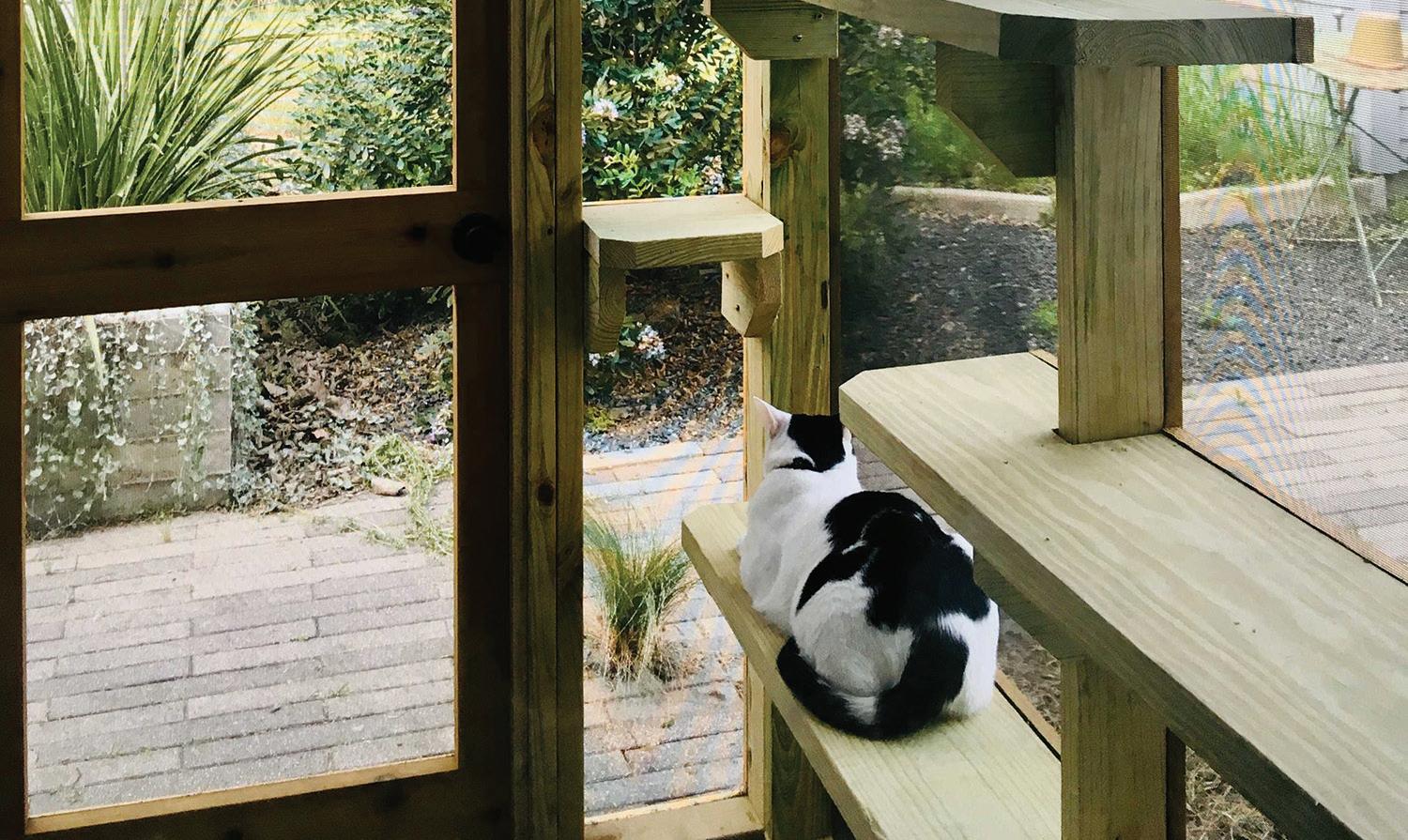 Mace recommends giving indoor cats the experience of the outdoors with a catio, an enclosed outdoor space that lets them safely enjoy nature.