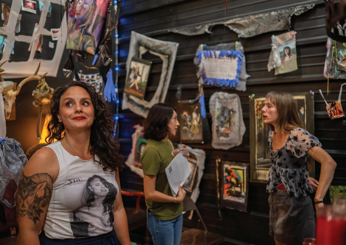Jacqueline Overby, cofounder and artistic director of MotherShip Studios, poses with friends in the San Marcos Film Lab’s photo booth during the San Marcos Studio Tour kickoff party, Friday, April 4, 2025 at MotherShip Studios. MotherShip Studios is a studio space for local artists.