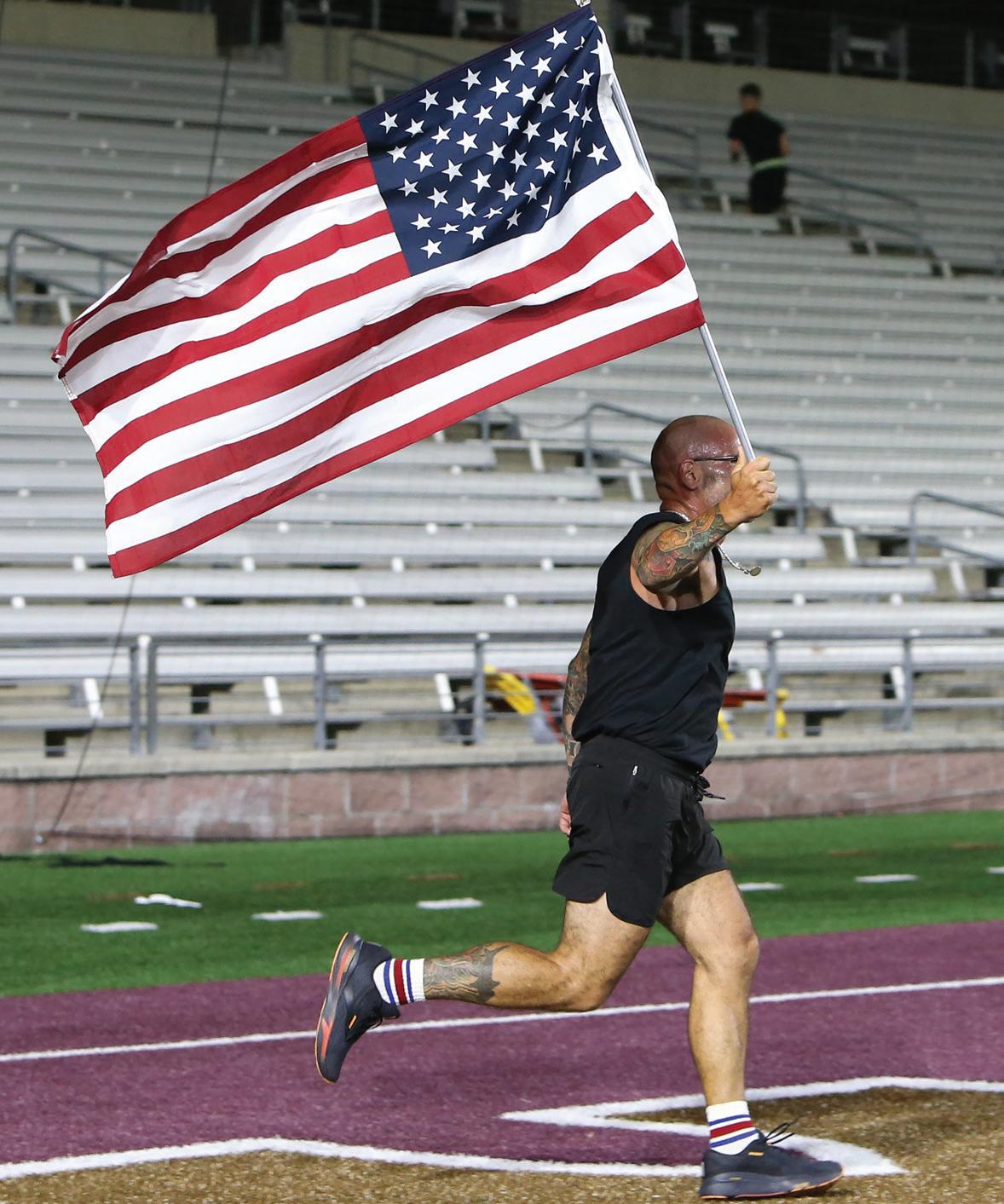 James Eyster, who was in New York during 9/11, participates in the 9/11 stair climb, Thursday, Sept. 11, 2025, at the UFCU Stadium. Participants climbed more than 2,000 steps, symbolizing the 110 stories first responders and survivors had to descent at the World Trade Center.
