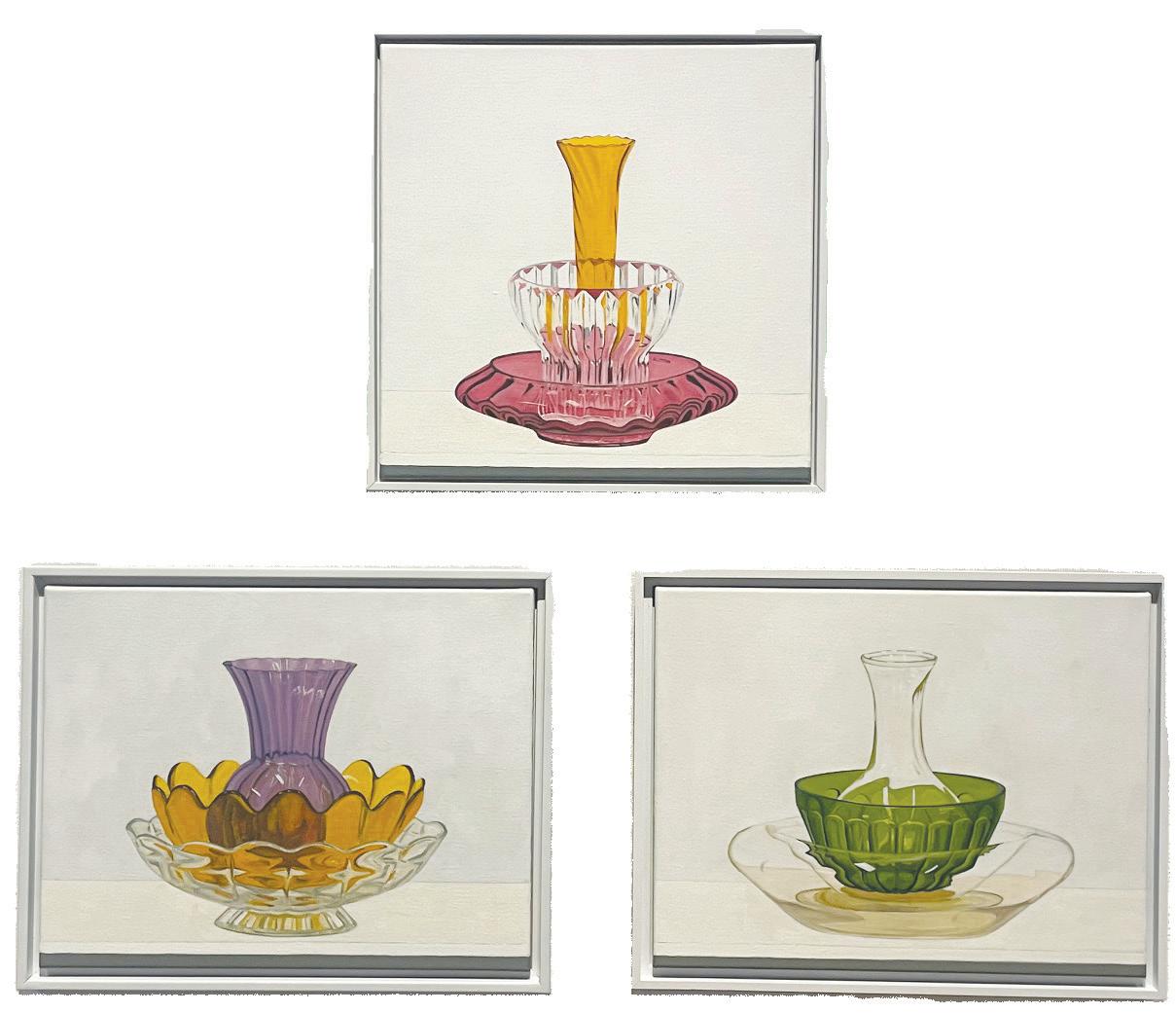 Part of his process is arranging the glass vessels he paints to find the right combination of colors, shapes and textures. This attention to detail is clear in his final pieces, as the artworks strike a great balance between the simplicity of the glasses themselves and the complexity of the arrangements.