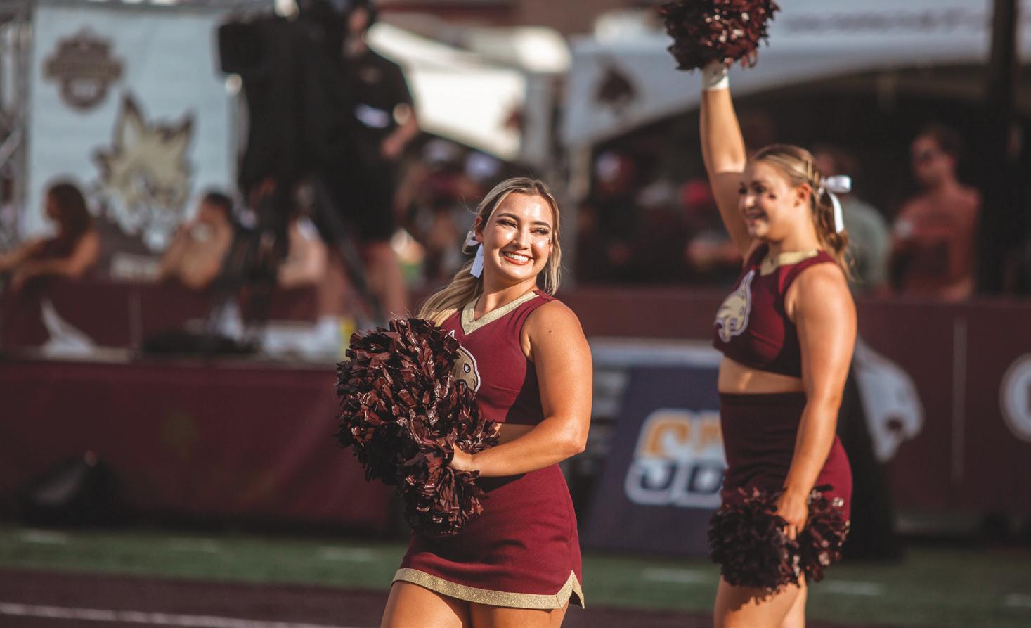 Texas State exercise and sports science senior Sara Otwell cheers on the sidelines during the football game against Houston Christian University, Saturday, Sept. 24, 2022, at Bobcat Stadium.