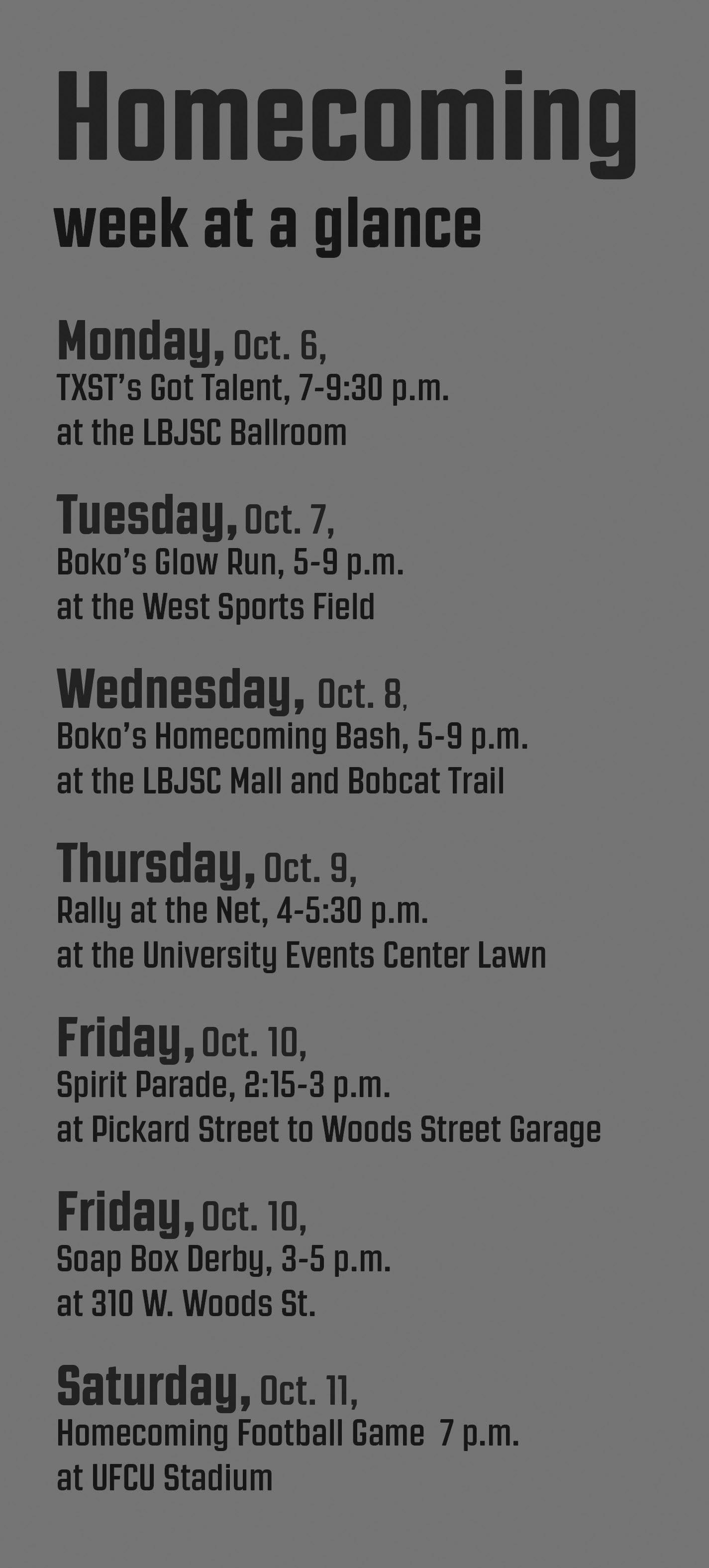 “Rally at the Net” is a Homecoming event aiming to bring awareness to Texas State’s volleyball game on Oct. 9. It will be from 4-5:30 p.m., leading up to the volleyball team taking on South Alabama at 6 p.m. Activities will include spike ball, giveaways and other spirit-building activities.