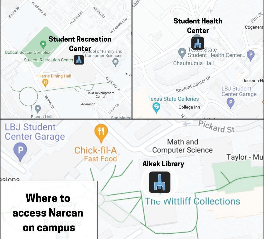 According to a February 2024 release, Texas State already has Naloxone, a generic of Narcan, at the Student Health Center, the Student Recreation Center and the Alkek Library.