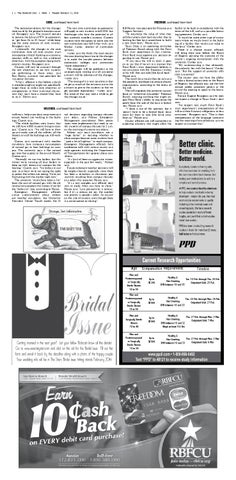 CORE, continued from front The recommendations for the changes were made by the general education council, Bourgeois said. The council decided to remove the lab and PFW requirements to “get from 46 to 42 hours” while keeping the same amount of core courses, Bourgeois said. Additionally, the changes to the core curriculum state all core courses must incorporate critical thinking and communication skills as well as two additional objectives, with the exception being mathematics courses, Bourgeois said. Courses will now be assessed through the new objectives to see how students are performing in those areas, said Ron Brown, assistant vice president for Academic Services. “What’s different is that before, a faculty member might or might not specifically target these so called core objectives or competencies in their individual classes, now they don’t have a choice—they have to do it,” Brown said.