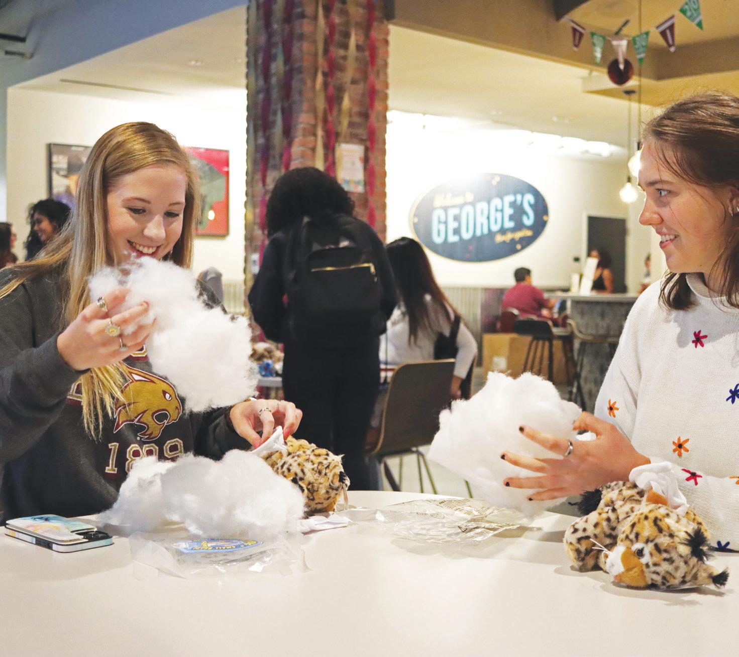 Texas State fashion merchandising senior Victoria Speers (left) stuffs a Boko with anthropology freshman Addison Woods, Thursday, Oct. 20 2022, at George's.
