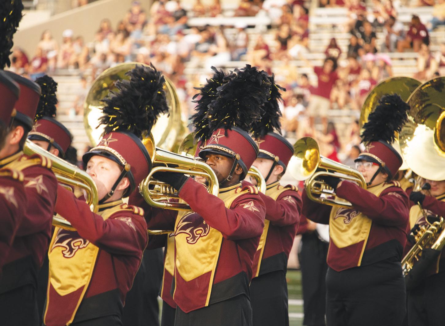 Texas State trumpet section preforms during homecoming halftime performance, Saturday Oct. 22, 2022, at Bobcat Stadium.