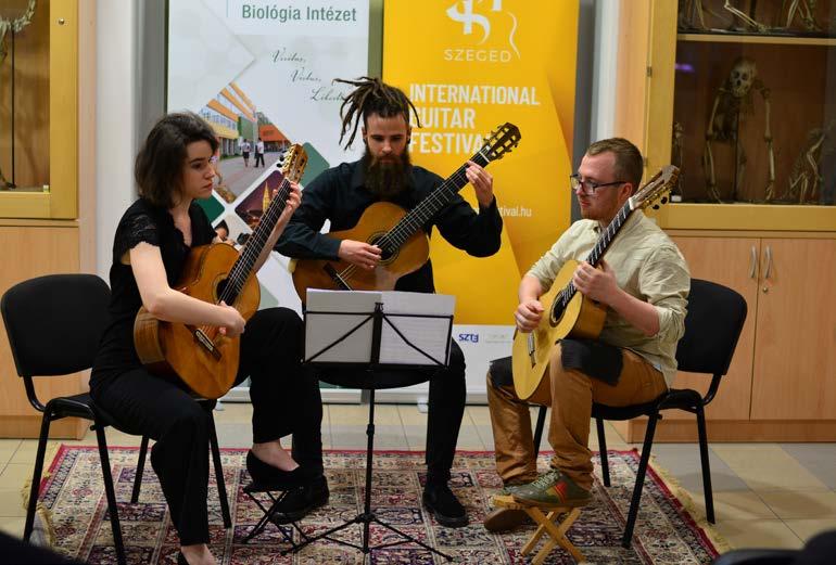 Művészeti Karának gitár tanszakos hallgatói. Az SZTE Biológia Intézet adott otthont a rendhagyó gitárkoncertnek, amit Egy húron pendülünk címmel rendeztek. A koncert a XXIV. Szegedi Nemzetközi