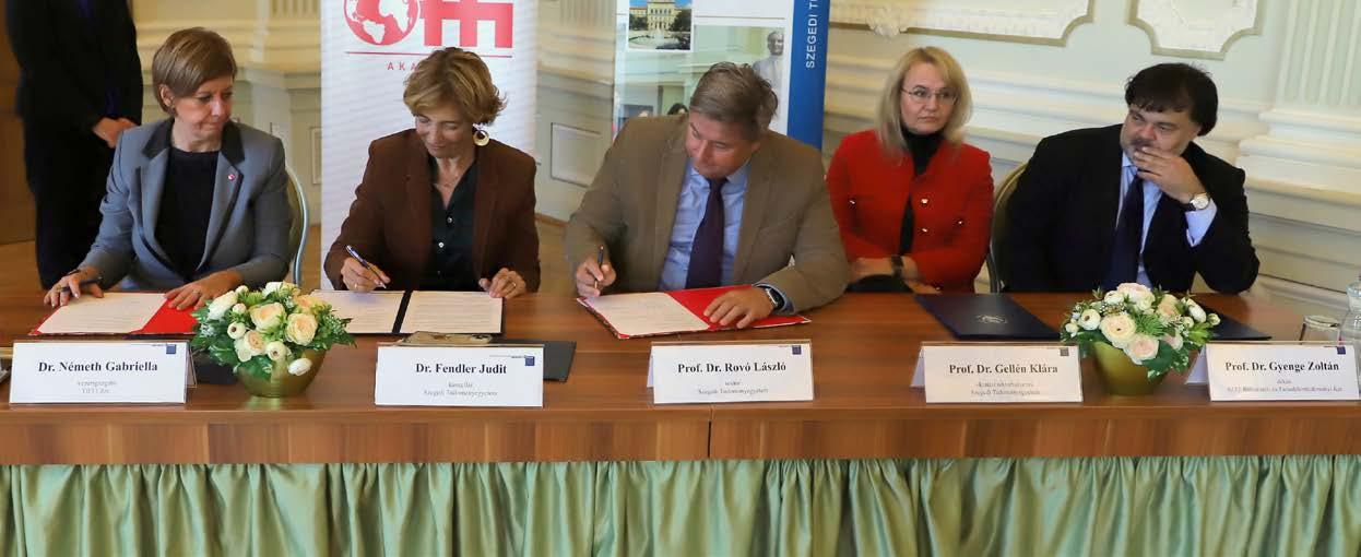 Az együttműködési megállapodást prof. dr. Rovó László, a Szegedi Tudományegyetem rektora, dr. Fendler Judit, a Szegedi Tudományegyetem kancellárja, és dr. Németh Gabriella, az Országos Fordító és Fordításhitelesítő Iroda vezérigazgatója látta el kézjegyével.