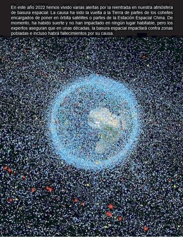 En este año 2022 hemos vivido varias alertas por la reentrada en nuestra atmósfera de basura espacial. La causa ha sido la vuelta a la Tierra de restos de cohetes encargados de poner en órbita satélites o partes de la Estación Espacial China. De momento, ha habido suerte y no han impactado en ningún lugar habitable, pero los expertos aseguran que en unas décadas, la basura espacial chocará contra zonas pobladas e incluso habrá fallecimientos por su causa.