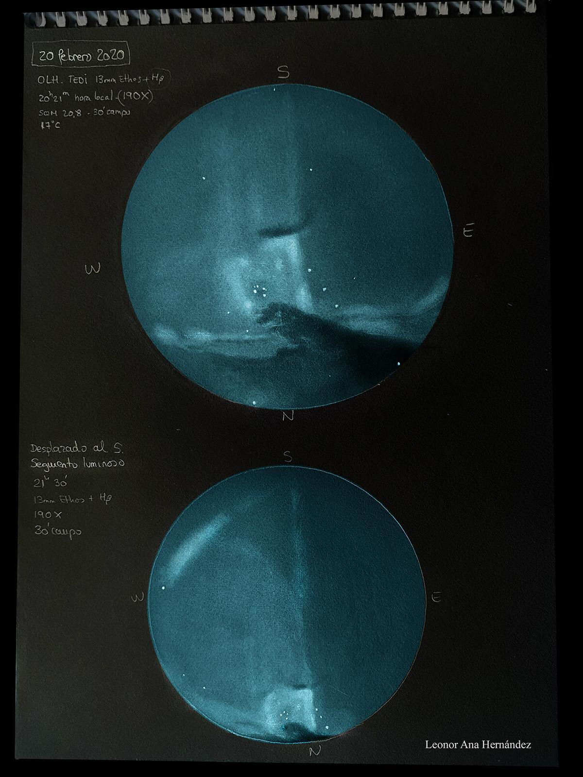 Algo me llamaba desde hacía tiempo. Y es que el tiempo es un aliado que me venía picando la curiosidad. Esto me llevó a realizar incursiones a libros escritos tiempo atrás como si desde el pasado me llamaran antiguos observadores para que, como ellos, repitiera cierta observaciones Querían que mirara M42 con sus ojos, que supiera lo que sintieron y vieron Parecía que podía oírlos susurrar en mi oído: mira, Leo, deja por un momento los grandes campos, parece que solo queréis abarcar luz, luz Focaliza, saborea a sorbos hay rincones llenos de sorpresas Sumérgete en los detalles ocultos de M42