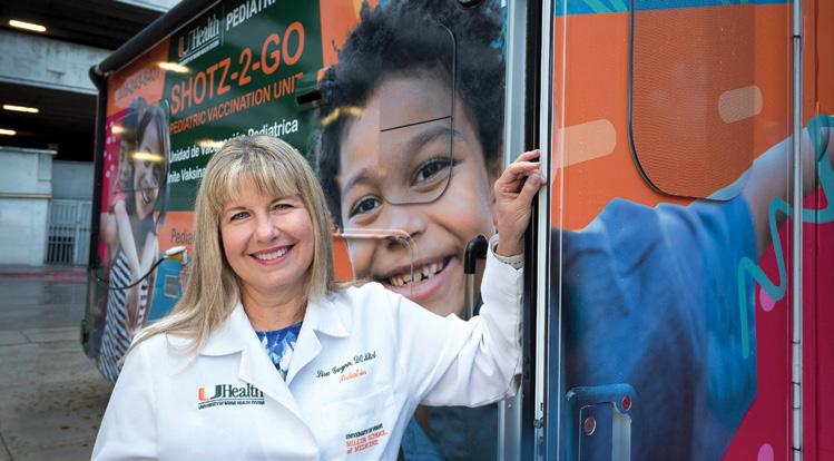 Approximately eight percent of Miami-Dade residents 18 and younger don’t have access to health care; at UHealth, we’re working to bring that percentage to zero. Thanks to a significant philanthropic donation from the Dr. John T. Macdonald Foundation School Health Initiative (SHI) and an award from The Children’s Trust, our pediatrics team has significantly expanded their efforts to deliver essential health services to young and vulnerable populations. Dr. Lisa Gwynn, medical director of the Pediatric Mobile Clinic and the Dr. John T. Macdonald School Health Initiative, is the lead investigator for the grant. Thanks to that funding, her team is bringing health services and wellness programs to nearly four times as many children and adolescents across South Florida.