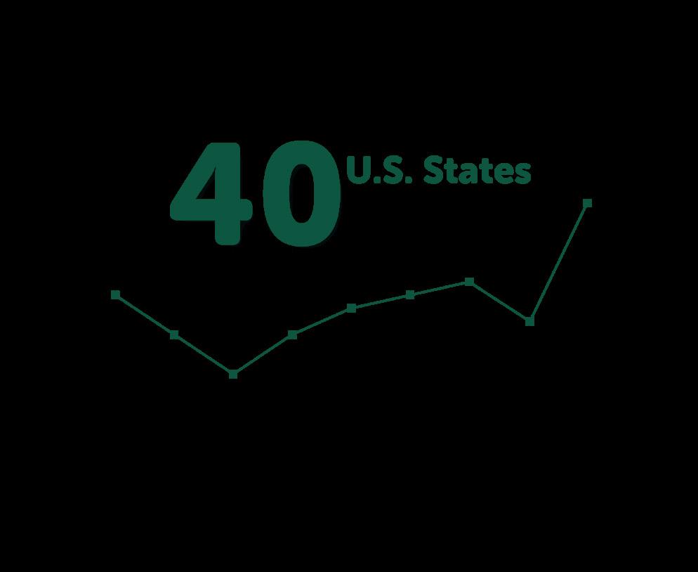 The increase in enrollment correlates with an increase in the number of states represented among the student body. In fall 2021, students came from 31 states. Today, students represent 40 states, hailing from as far east as Connecticut and as far west as Alaska and Hawaii.