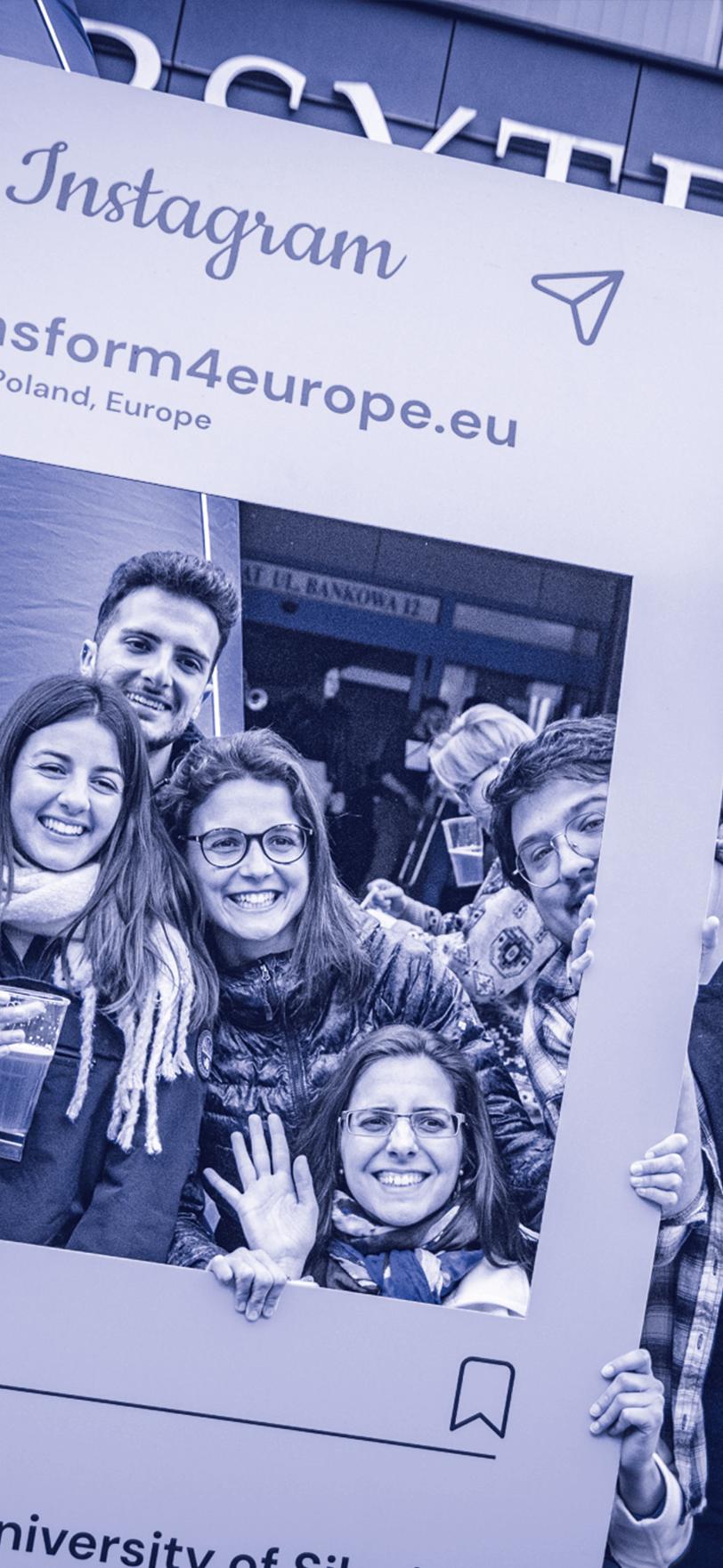 skorzystania z długo- i krótkoterminowych mobilności zagranicznych w ramach programu Erasmus+, obejmujących wyjazdy zarówno na studia jak i na praktyki. Można wyjeżdżać –wielokrotnie! – na studia do blisko 500 uczelni w 48 krajach całego świata lub na praktykę do 32 krajów europejskich. Ponadto, możliwe są wyjazdy na inną uczelnię zagraniczną w ramach umów bilateralnych, a także wyjazdy krajowe w ramach wymiany akademickiej osób studiujących i osób doktoranckich MOST. Co więcej, wraz z dziesięcioma uczelniami europejskimi tworzymy prestiżowy Uniwersytet Europejski w ramach sojuszu Transform4Europe (T4EU), któremu Uniwersytet Śląski przewodniczy w 2024 r. Wspólna europejska uczelnia zapewni Ci większe możliwości kształcenia na kierunkach studiów o zasięgu międzynarodowym, korzystania z wielojęzycznego kampusu, udziału w różnorodnych wydarzeniach o globalnym charakterze, a także umożliwi wymianę międzykulturową, poznanie innych kultur i nawiązanie wyjątkowych znajomości!