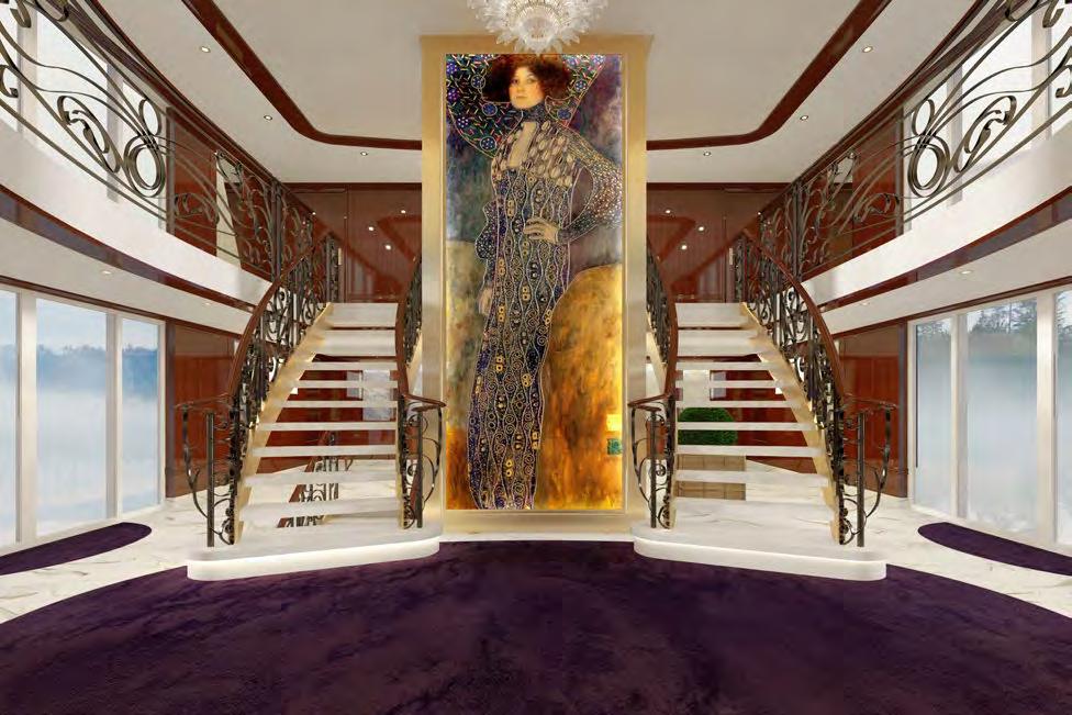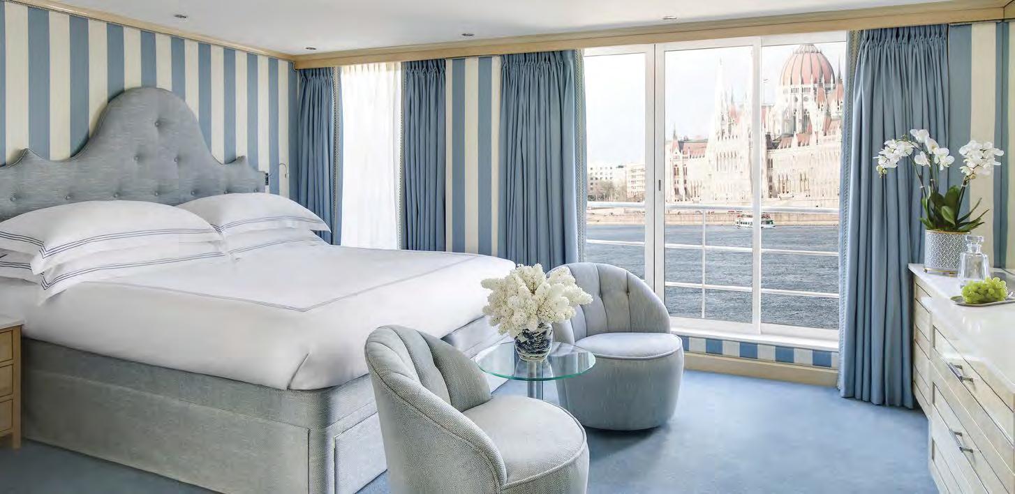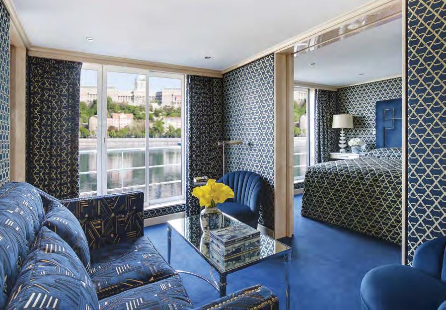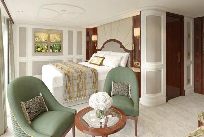 Sailing the Danube River, the next member of our Super Ship fleet will be inspired by master Viennese painter Gustav Klimt. In his honor, we’re naming the vessel after his beloved muse, Emilie Flöge. When she debuts in 2026, the S.S. Emilie will bring elements of Klimt’s signature style to our guests, with dramatic hues, Art Nouveau elements, and stunning pops of gold. Guests who book a Grand Suite and the adjoining Deluxe French Balcony next door can see their stateroom transformed into an incredibly spacious 2-bedroom suite.