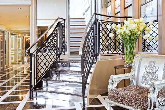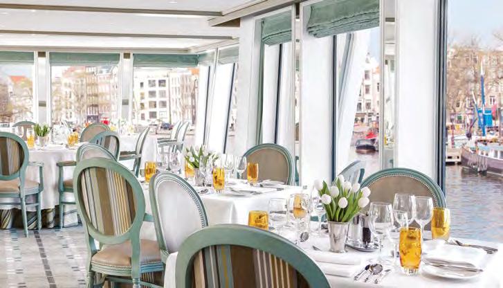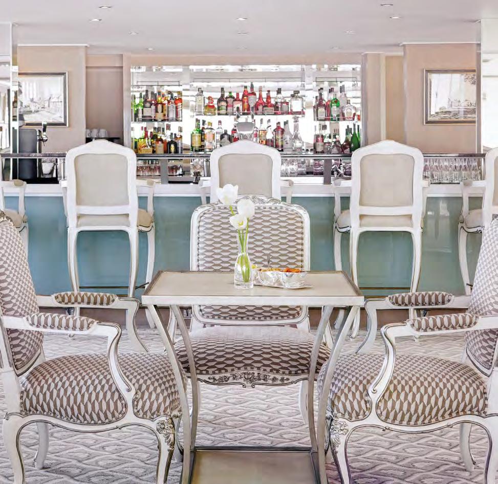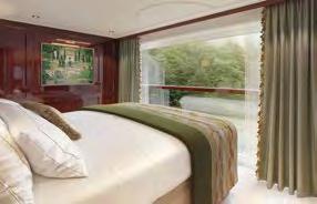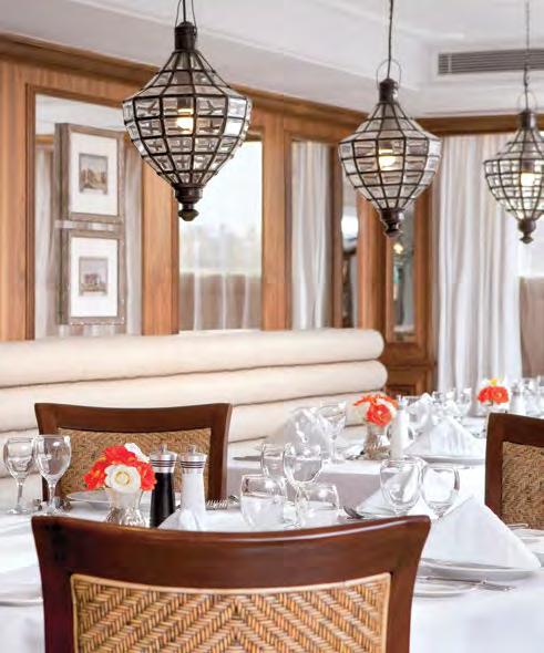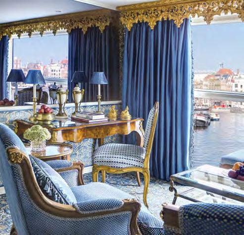 The luxurious décor of the 443-foot, 152-passenger S.S. Antoinette —Uniworld’s first Super Ship—features fine Brazilian marble on the walls and floors, a 19th-century Venetian glass mirror, a stylish Bar du Leopard with full-service bar, and an onboard cinema. The two-story foyer boasts a 10-foot blue Strauss Baccarat chandelier with huge sapphires—a stunning piece that once hung in New York’s famous Tavern on the Green—and a collection of original artwork is displayed throughout the ship.