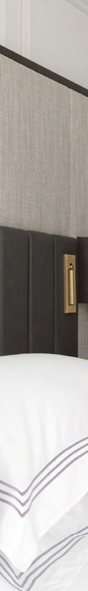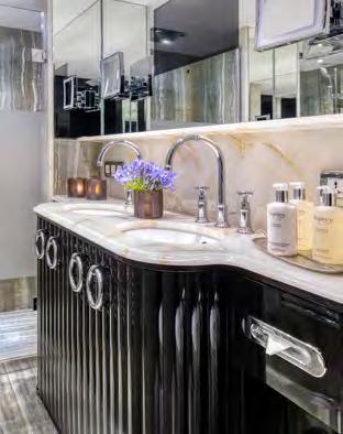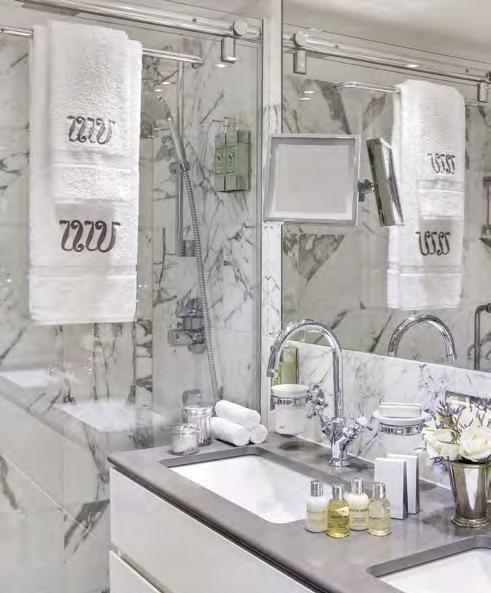 Other high-end amenities include a generous amount of closet space, under-bed storage, a flat-screen television with a wide selection of on-demand movies, individual climate control, bottled water replenished daily, fresh fruit and flowers upon arrival, makeup mirrors, and universal electrical plugs.