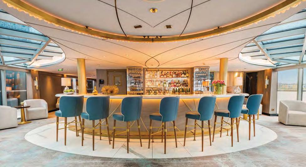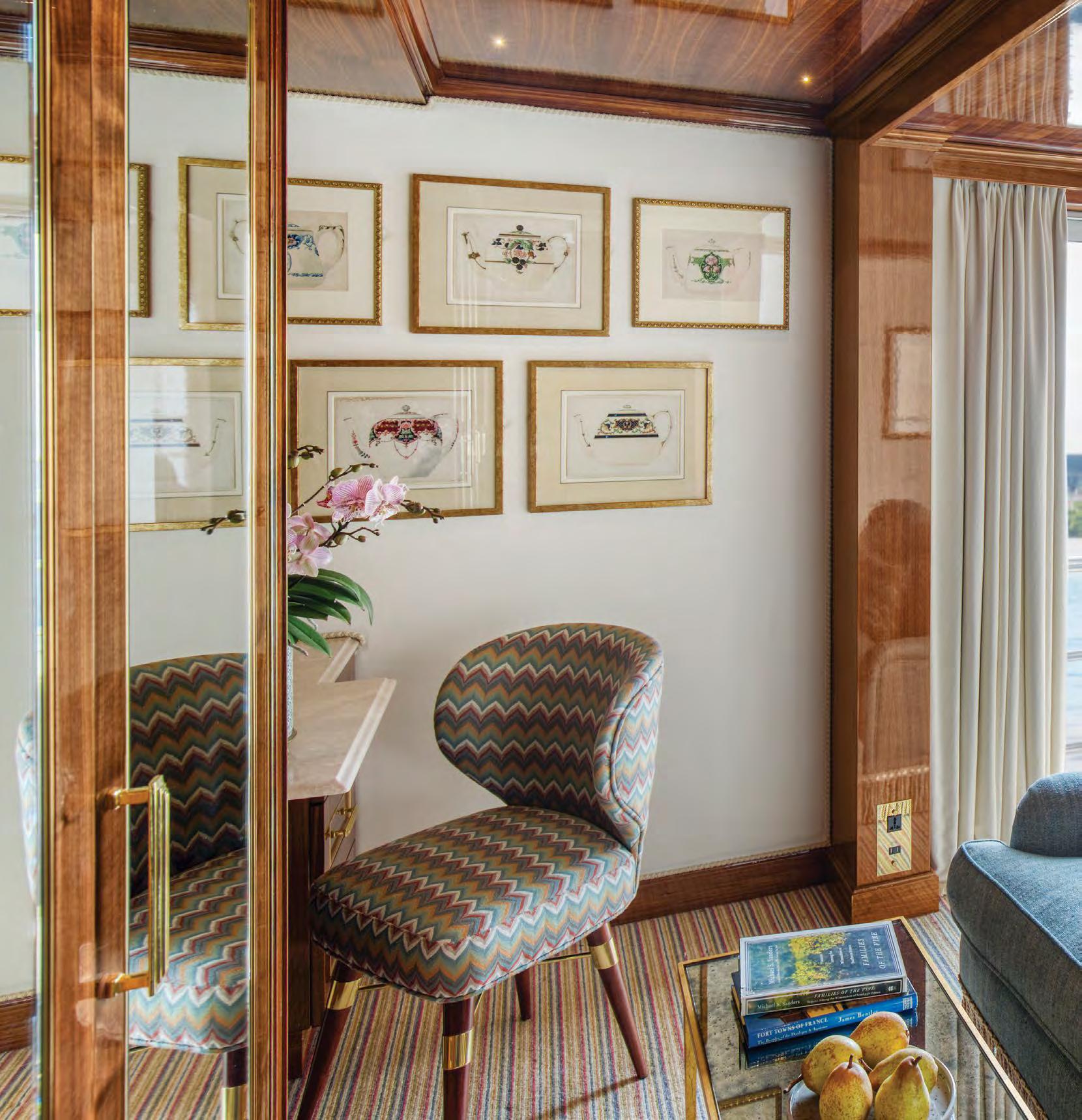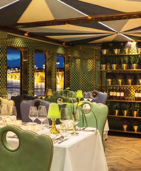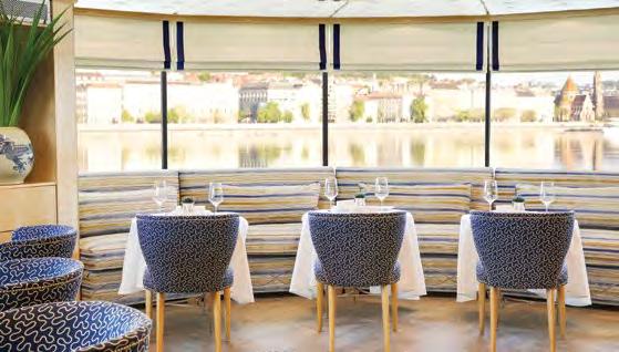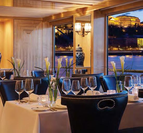 This jewel of a ship graces the waters of the Danube River, boasting splashes of nautical hues, a stunning lobby featuring elegant mirrors, marble floors, a white Murano chandelier and a grand staircase made of nickel and iron. The design inspirations include 14th-century Chinese porcelain and Dutch Delftware. S.S. Beatrice creates enhanced dining and culinary experiences by offering four unique venues, all inspired by famous Austrian composers.