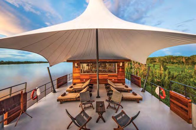 Designed to explore the heart of the Peruvian Amazon in luxury and comfort, the Aria Amazon is an all-suite ship with floor-to-ceiling windows, giving you a full view of the majestic rivers and rainforest. The top deck features a jacuzzi, indoor lounge & bar, and an outdoor observation deck.