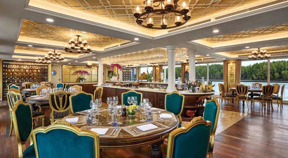 This incredibly spacious, multistory ship will have you charmed by your surroundings from the moment you step onboard. The all-suite Mekong Jewel is made of sustainable and eco-friendly materials and features artwork inspired by the landscapes of Vietnam and Cambodia, beautiful indoor and outdoor lounges, a pool, two dining venues, and a wellness center complete with a nail and hair bar.