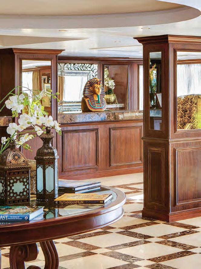 The S.S. Sphinx offers two gourmet dining venues, gym, swimming pool, massage room, gorgeously appointed suites, and stunning French balcony staterooms, not to mention, sweeping views of the longest river in the world. This Super Ship offers an immersive onboard experience, with bespoke décor by local artisans and materials sourced regionally—such as fine Egyptian cottons, marble and hand-carved blonde wood—to highlight Egyptian craftsmanship while minimizing our carbon footprint.